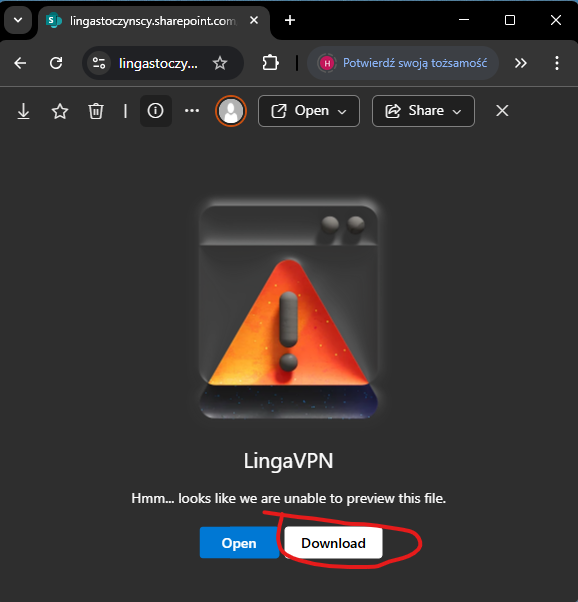 1. Należy pobrać instalator profilu VPN ze strony (konieczne zalogowanie kontem linga):