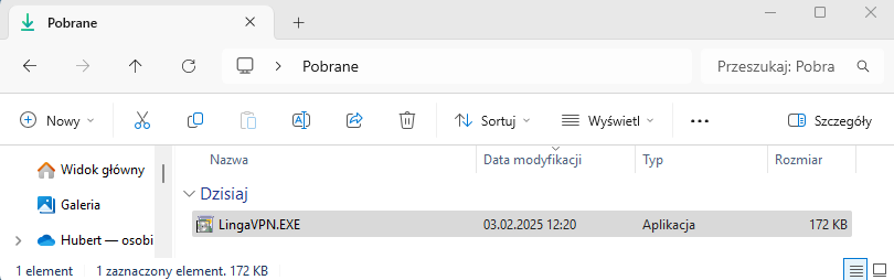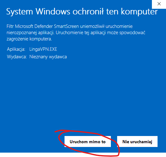 2. Nalezy uruchomic pobrany wczesniej plik: LingaVPN.exe
