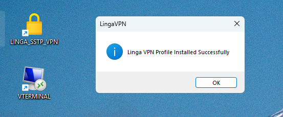 4. Aby ustanowic polaczenie VPN klikamy w ikone kłódki o nazwie: LINGA_SSTP_VPN.